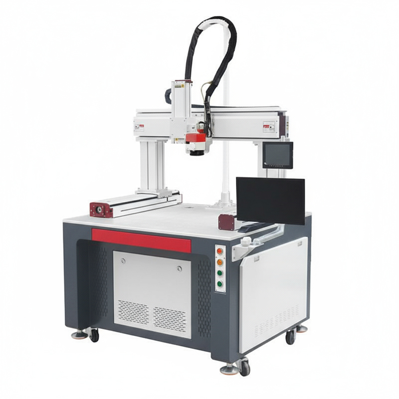 This 6-axis CNC automatic platform laser welding machine is primarily designed for precision welding of small metal workpieces. Based on our standard model, it features a smaller 500*400*400mm travel module and a smaller cabinet to meet customer requirements for reduced space and logistics costs. The travel module of this model can also be flexibly customized to meet customer requirements.